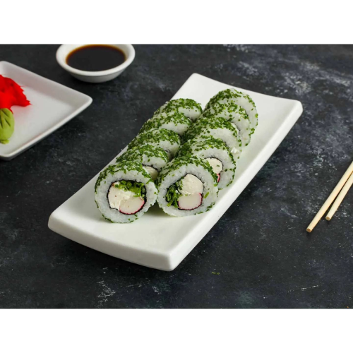 Roll sin cortar, base de arroz, queso crema y cebollín más una proteína o verdura a elección.