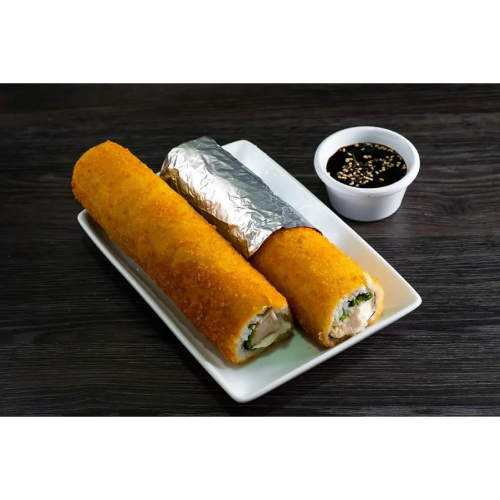 Roll envuelto en sésamo o ciboulette más una proteína o verdura a elección.